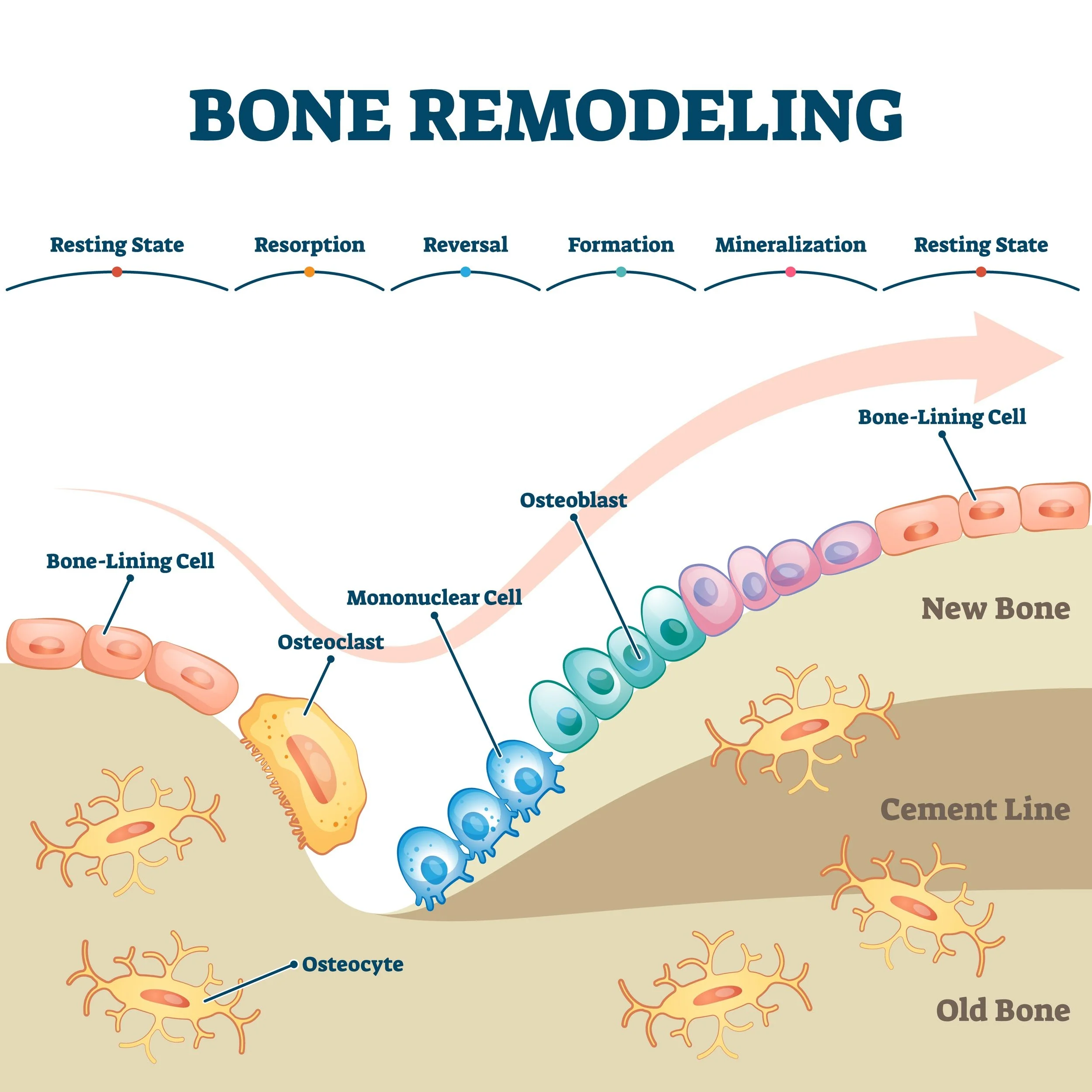 Osteoblasts: The "construction workers" that build new bone.